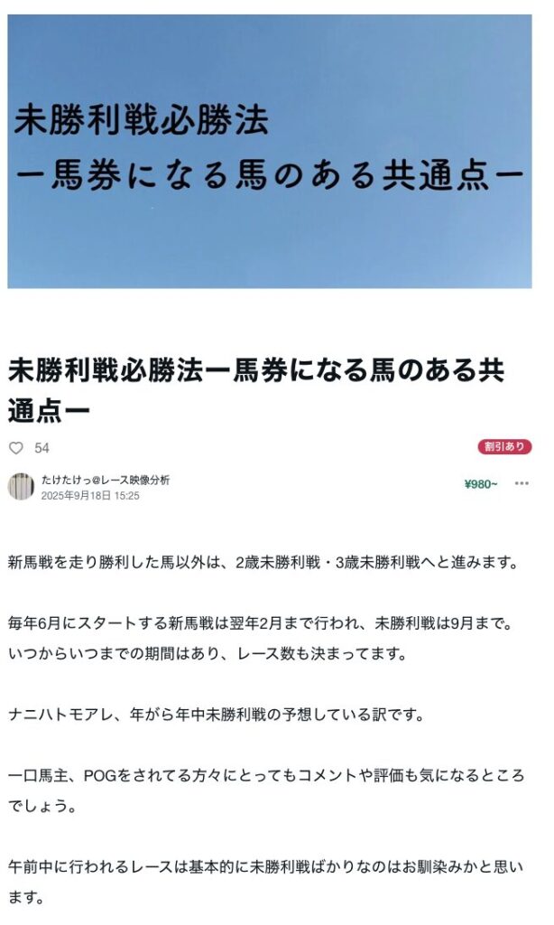 書くネタはたくさんあるので、何を書こうかなと思ってたところ「未勝利戦のあるパターン」についてが面白いかなと、数日かけて執筆いたしました。